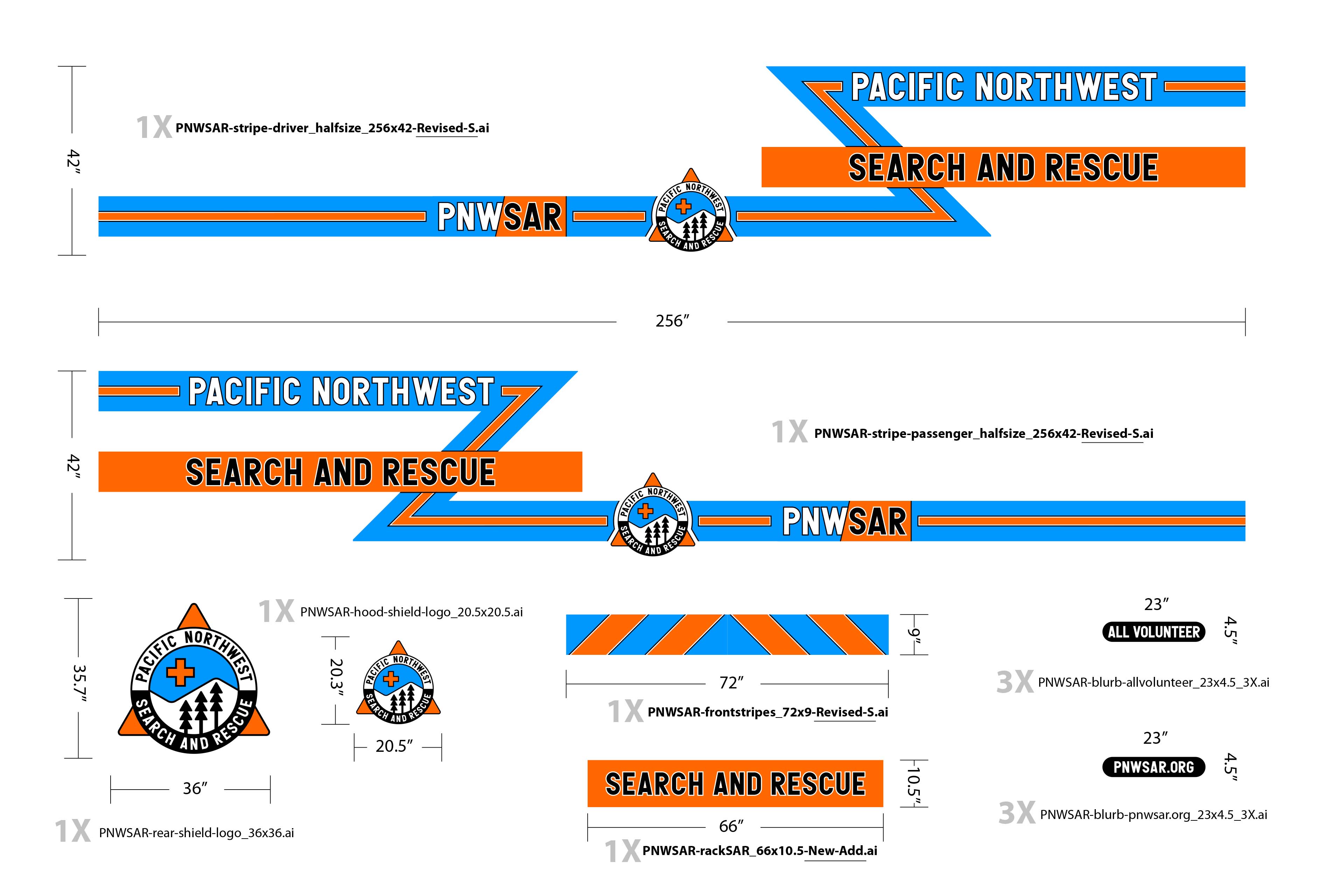 Identity re-design and vehicle graphics for emergency response organization PNWSAR