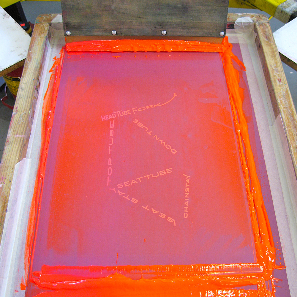 A bicycle frame in a screen frame, printing art to be framed. You click - or - tap to let the print get closer to you. Then back away. Made with quality components, it's time-tested and true.